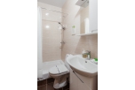Однокомнатный номер на 2-ом этаже с двуспальной кроватью. Покрытие пола - светлый ламинат. В номере имеется письменный стол,шкаф .Санузел с душем .