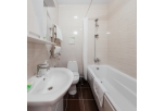 Однокомнатный номер на 2-ом этаже с двуспальной кроватью. Покрытие пола - светлый ламинат. В прихожей встроенный шкаф .Санузел с ванной.