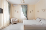 Дополнительное место: еврораскладушка Ванная: большая угловая ванна Кол-во гостей: 2-3 чел Площадь: 22 кв.м Комнаты: одна Вид: внутренний дворик |