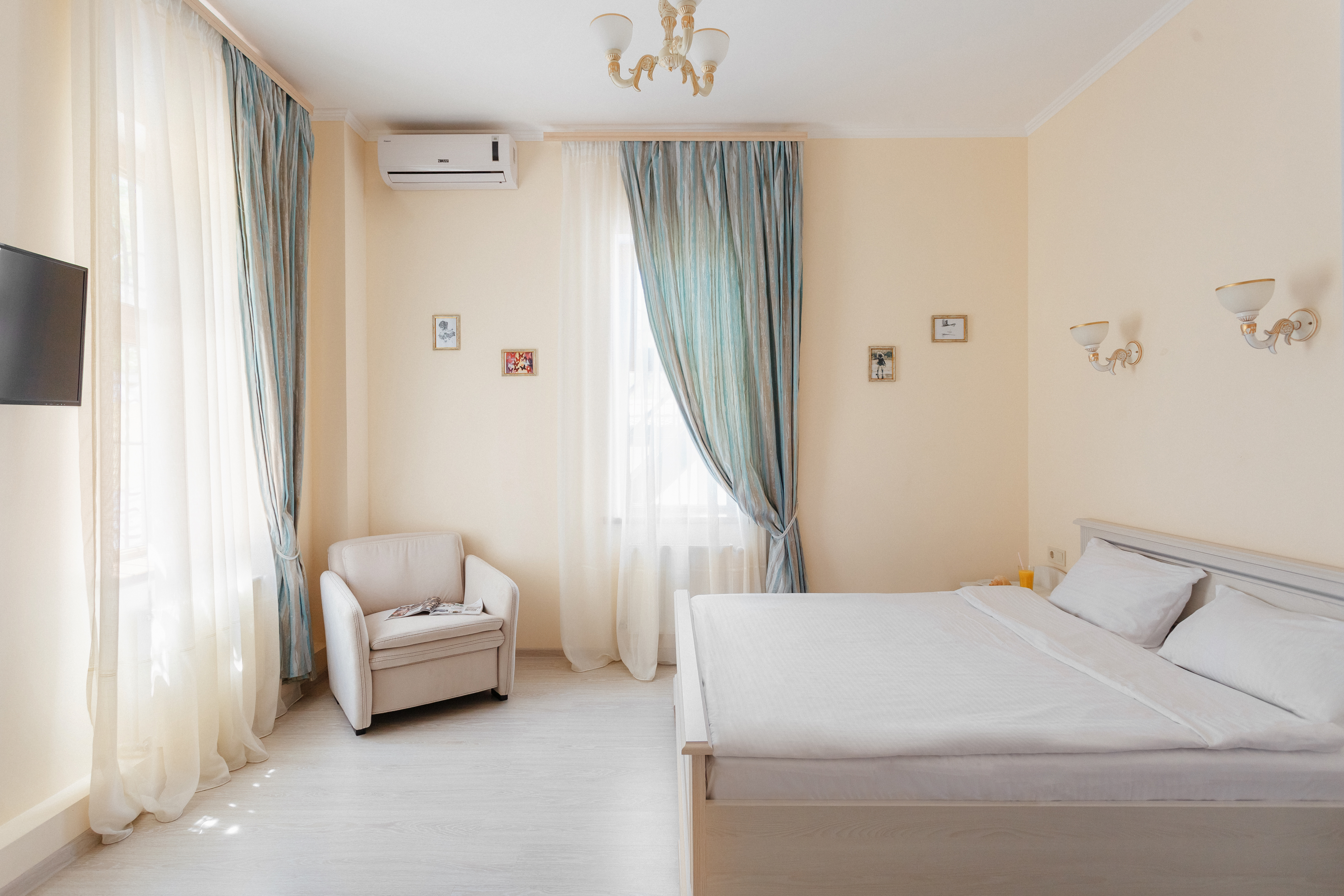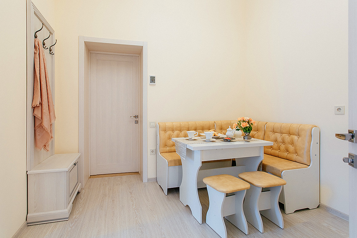 Кровать с ортопедическим матрасом Комод с зеркалом Обеденный стол и уголок Гипоаллергенные подушки и одеяла Кондиционер Холодильник |